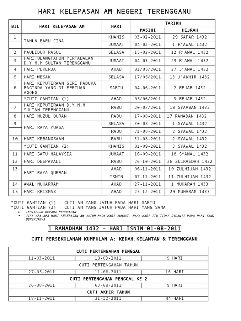 Makluman Umum Hari Kelepasan Am Bagi Kerajaan Negeri Terengganu Facebook