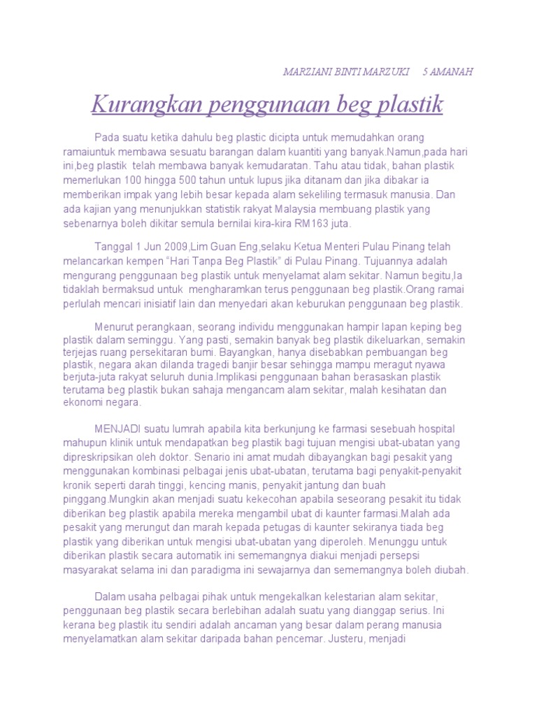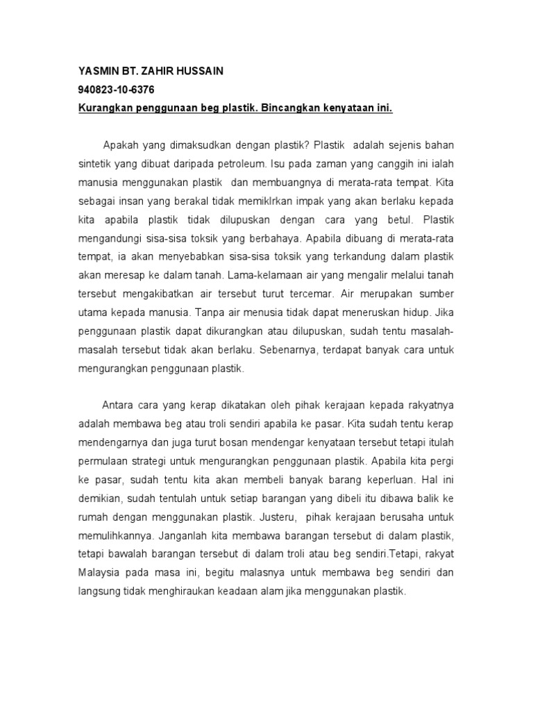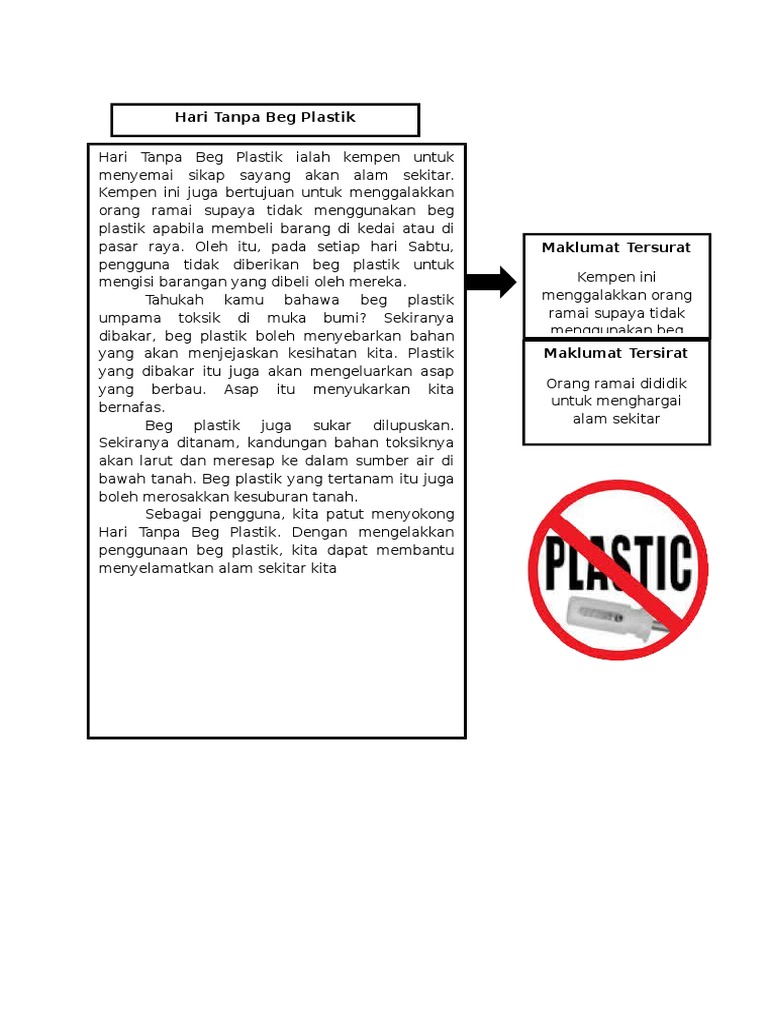 Wadah Keterampilan Berbahasa Rencana Umum Kepentingan Kempen Hari Tanpa Beg Plastik Polisterina