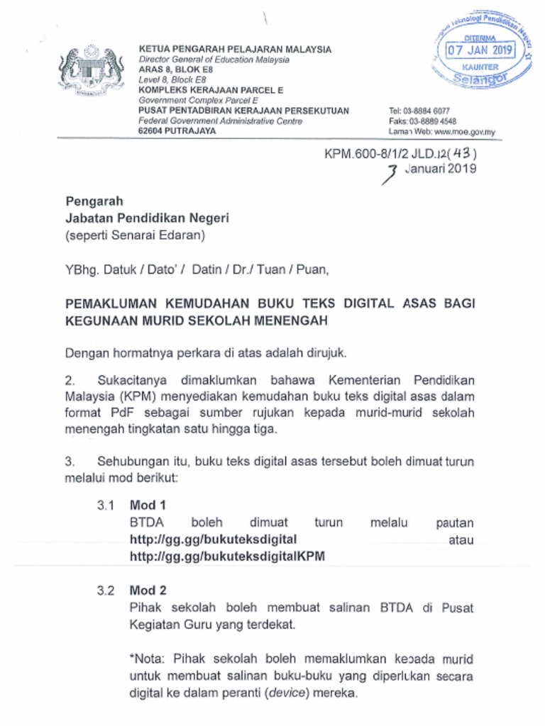 Pemakluman Kemudahan Buku Teks Digital Asas Bagi Kegunaan Murid Sekolah Menengah Blog Rasmi Pusat Kegiatan Guru Pkg Kuala Penyu