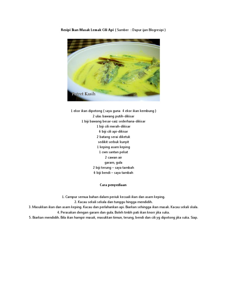 Resep Ikan Masak Lemak Cili Api By Lely Oleh Lely Natalia Cookpad