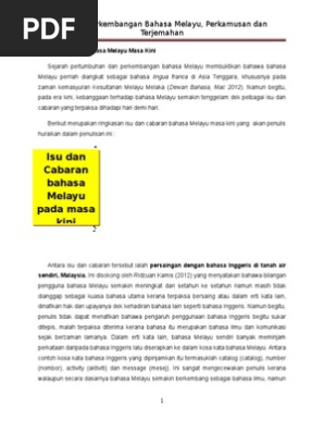 Isu Dan Cabaran Bahasa Melayu Masa Kini Docx