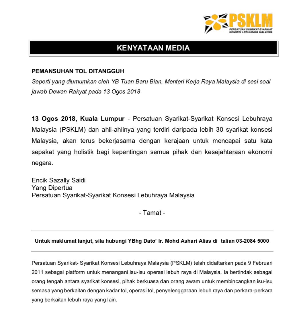 Travelsmarter Auf Twitter Kenyataan Media Mengenai Penangguhan Pemansuhan Tol Moworks Baru Bian Hjanuartahir Tksu Pengurusan Zohariakob Saranidollah Norehamohd Llmrasmi Lebuhrayamsia Https T Co Xaluhluiny