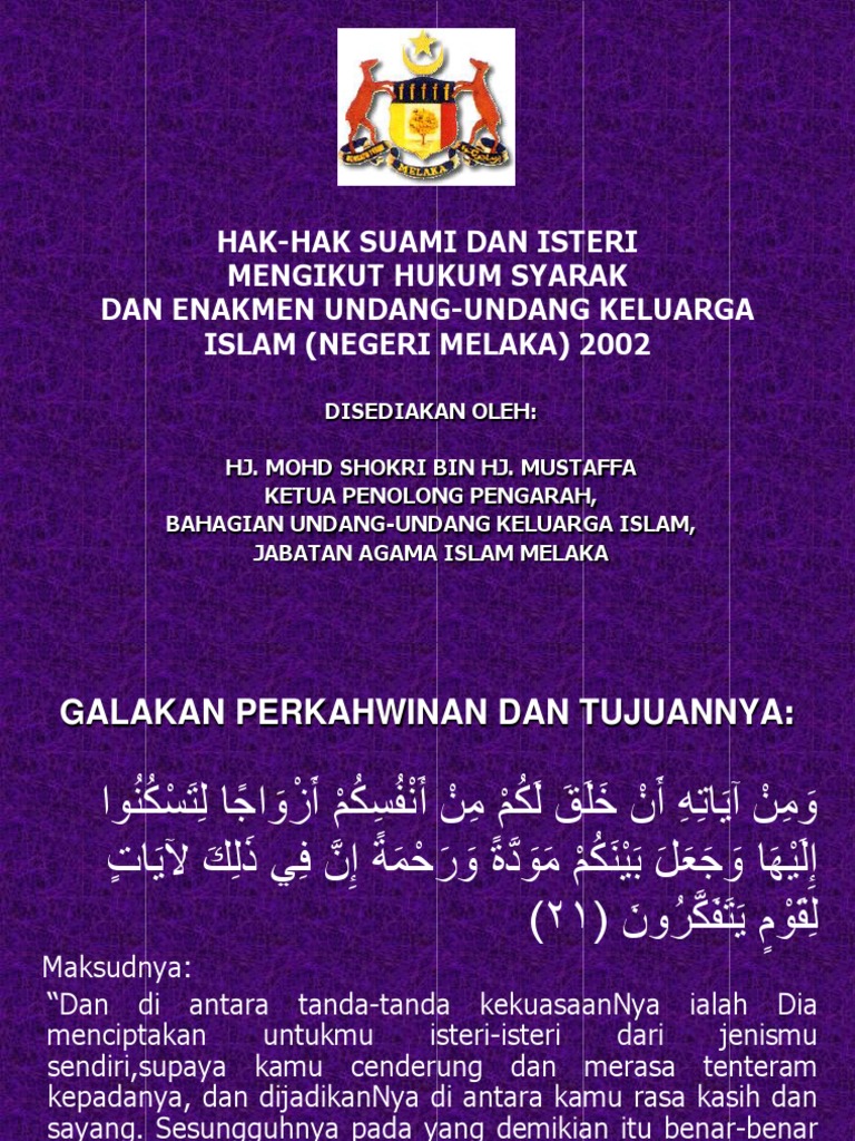 Hak Hak Suami Dan Isteri Dalam Tempoh Perkahwinan