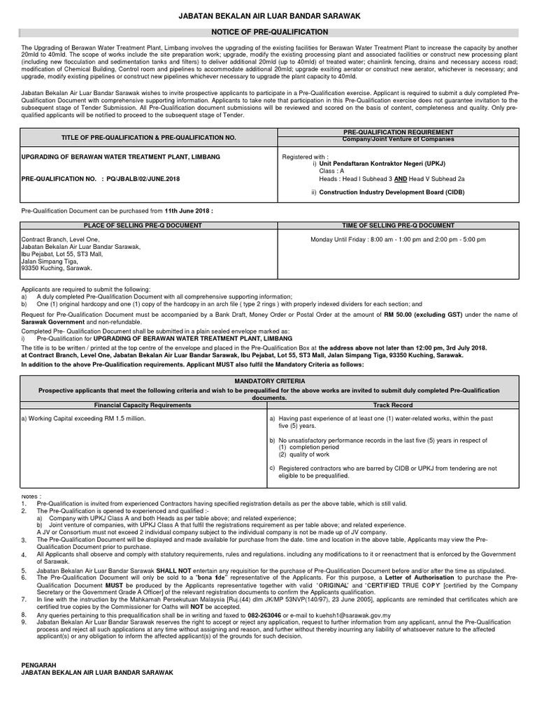 Jawatan Kosong Jabatan Bekalan Air Luar Rakan Jbalb Bahagian Sarikei Facebook