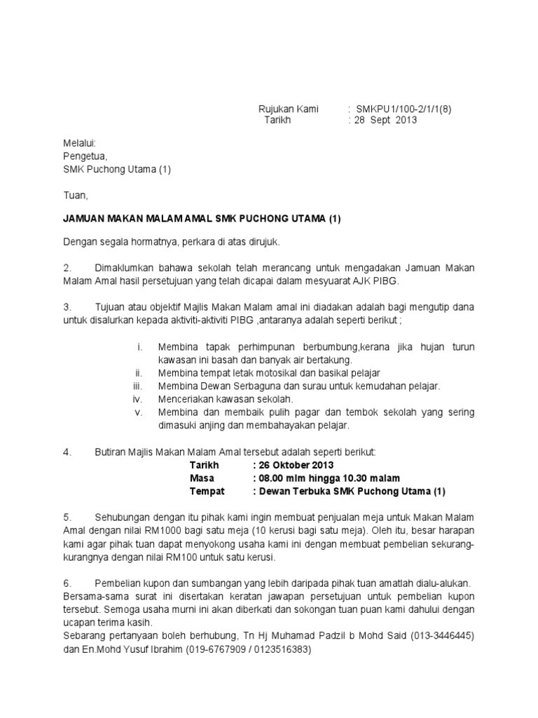 Surat Makluman Dan Jemputan Majlis Makan Malam Amal Smk Puchong Utama 1 Doc Document