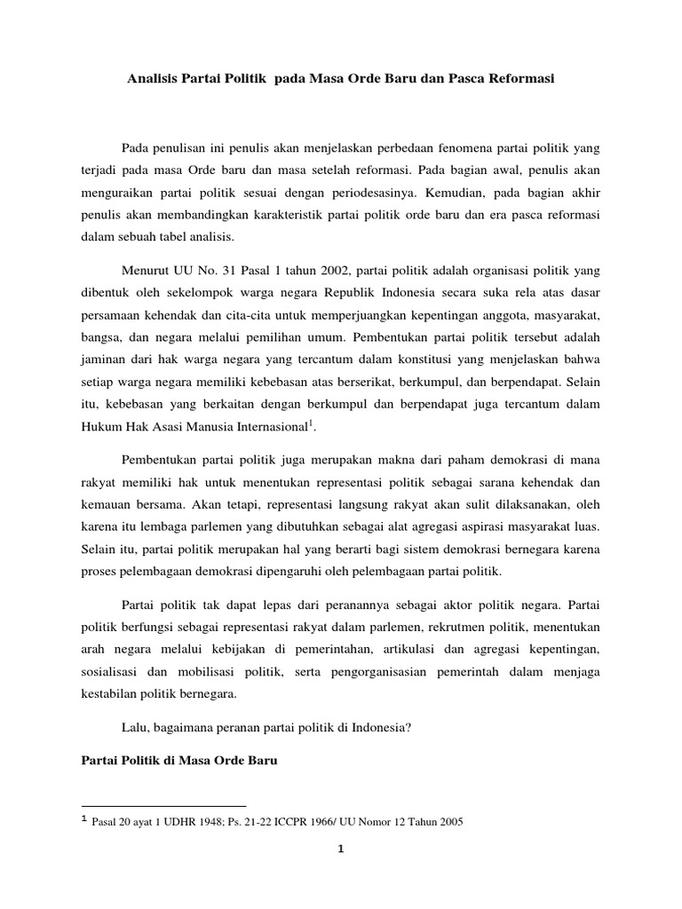Analisis Partai Politik Pada Masa Orde Baru Dan Pasca Reformasi