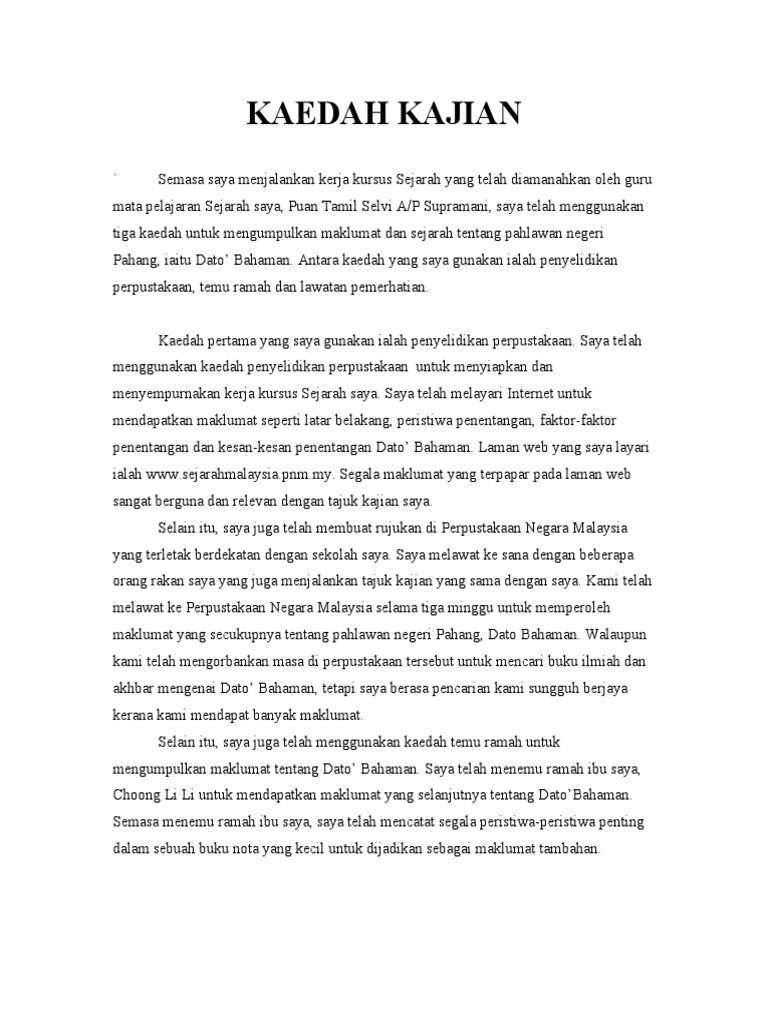 Kaedah Kajian Contoh Folio Sejarah Tingkatan 3