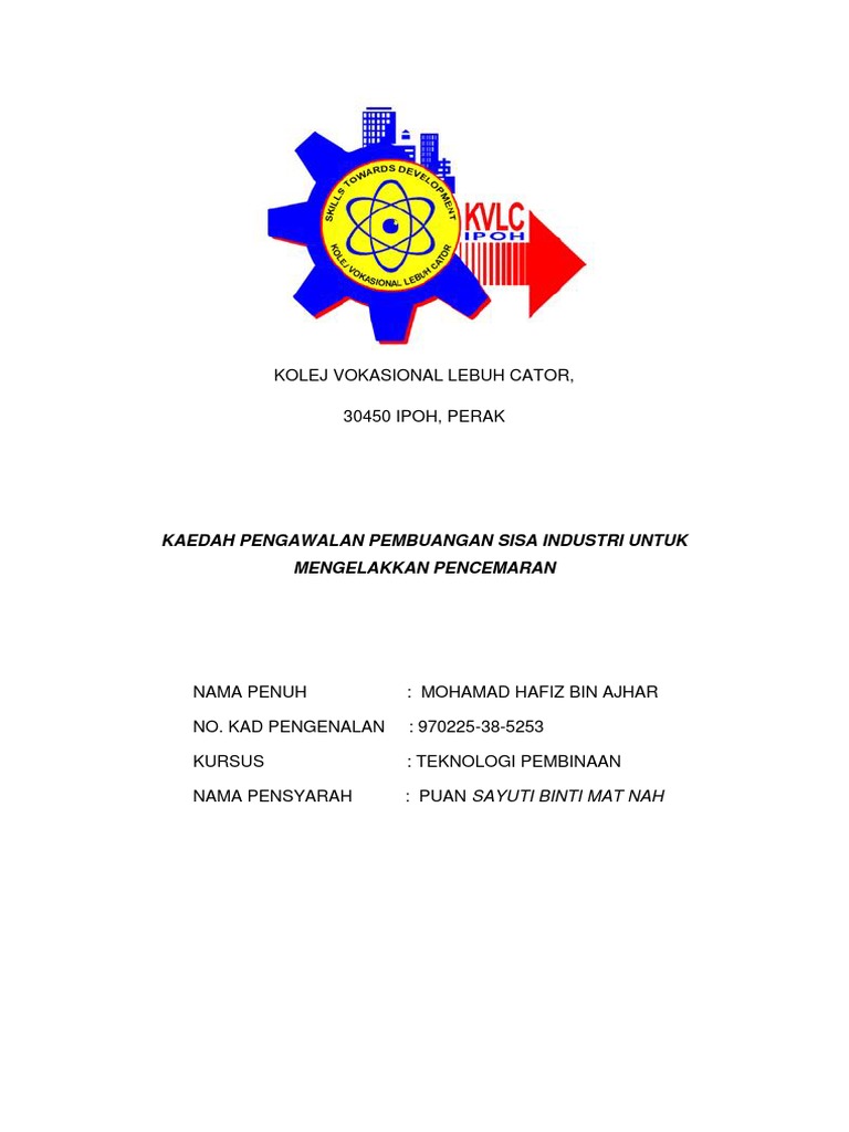 Tajuk Kesan Pembuangan Bahan Sisa Industri Terhadap Alam Sekitar By Lily Suriyani