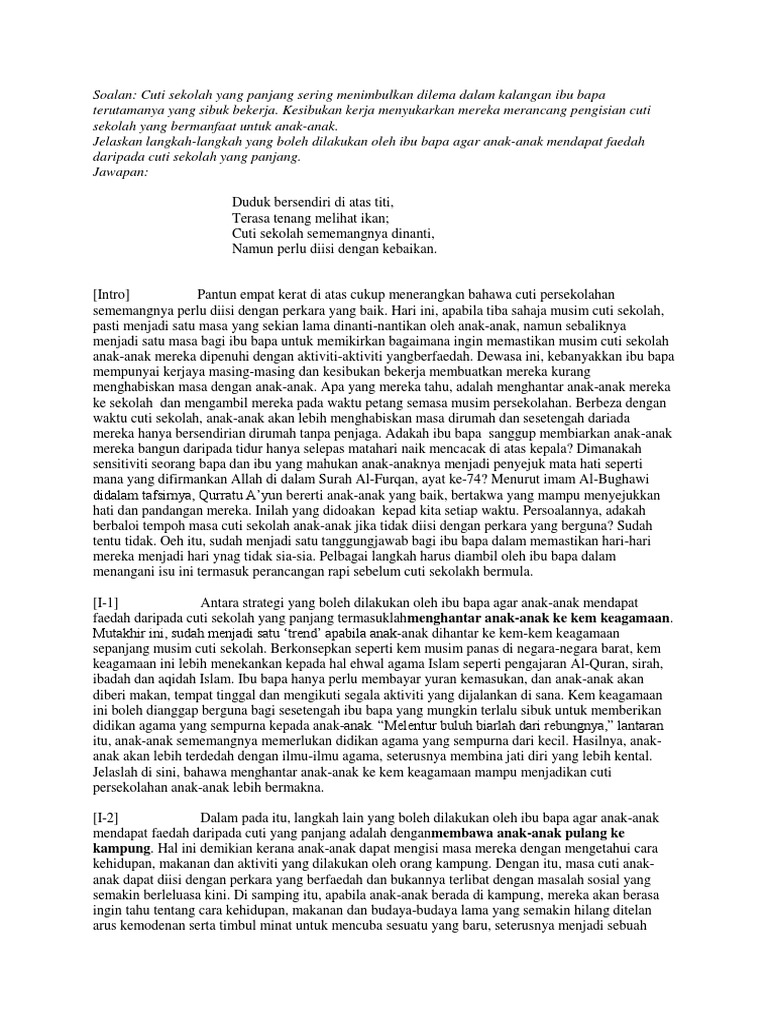 Karangan Cara Cara Mengisi Masa Lapang Pada Cuti Sekolah