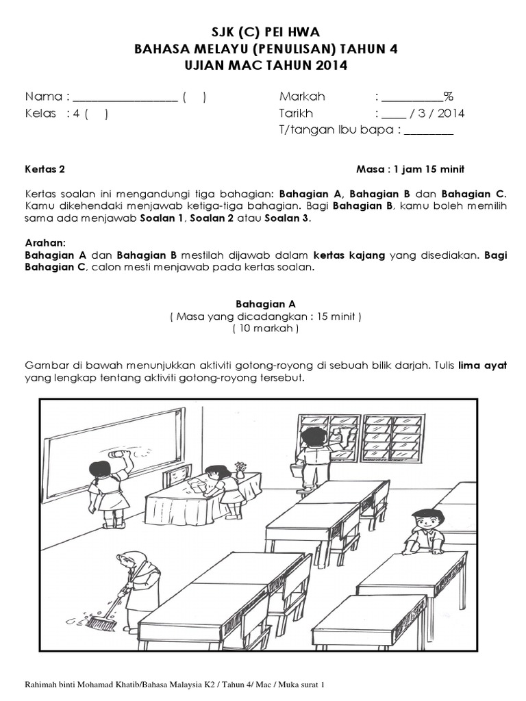 Kertas Peperiksaan Karangan Bahasa Malaysia Sjk C Cheng Hua Tahun 4