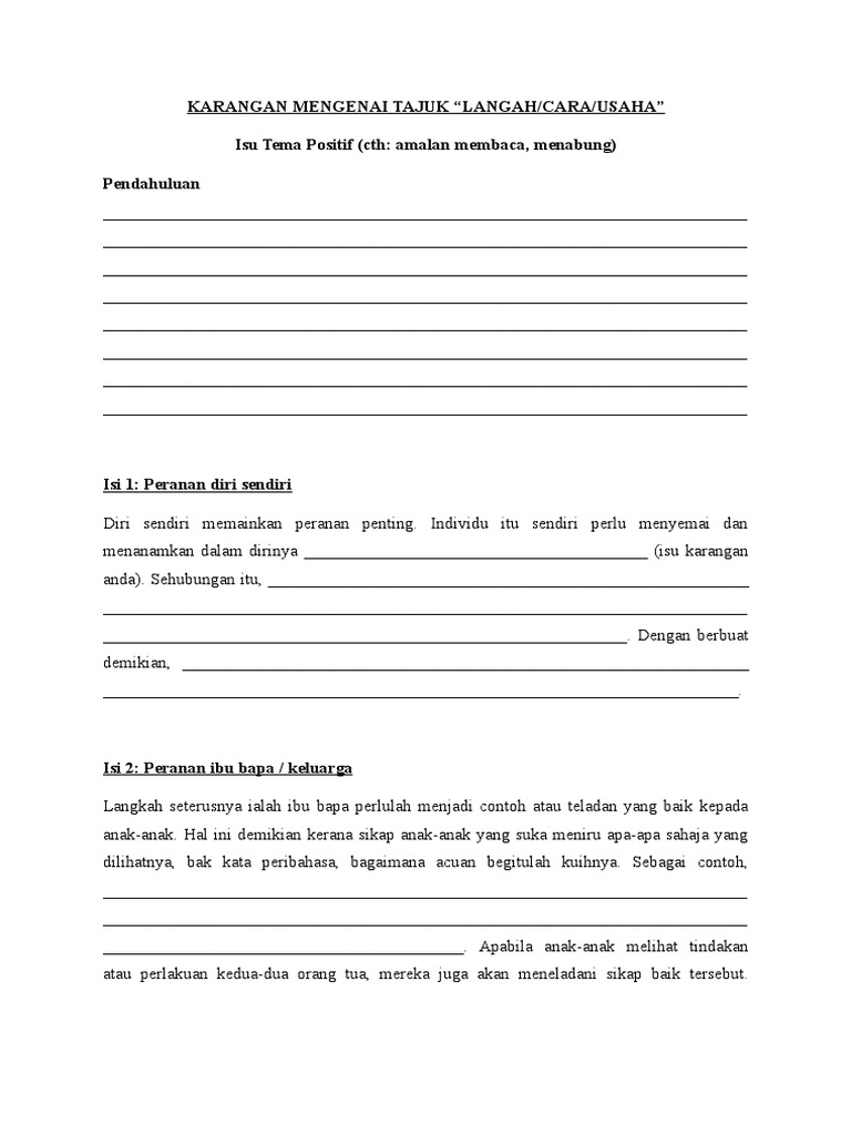 Karangan Mengenai Tajuk Langah Cara Usaha Isu Tema Positif Cth Amalan Membaca Menabung Pendahuluan
