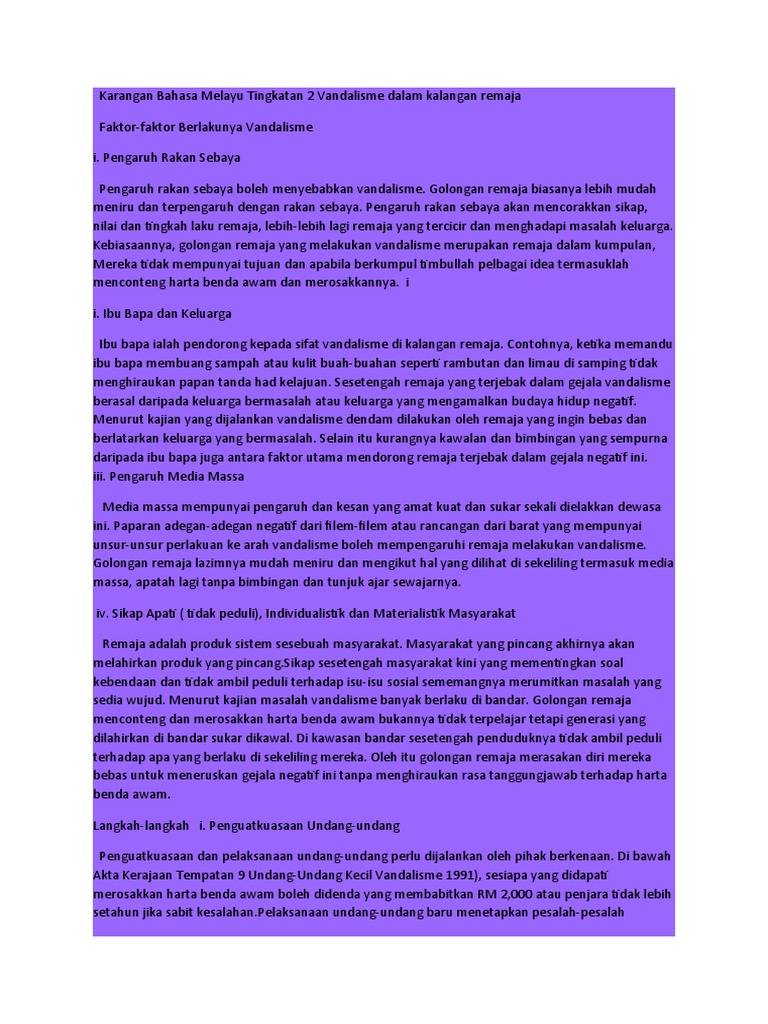 Karangan Bahasa Melayu Tingkatan 2 Vandalisme Dalam Kalangan Remaja