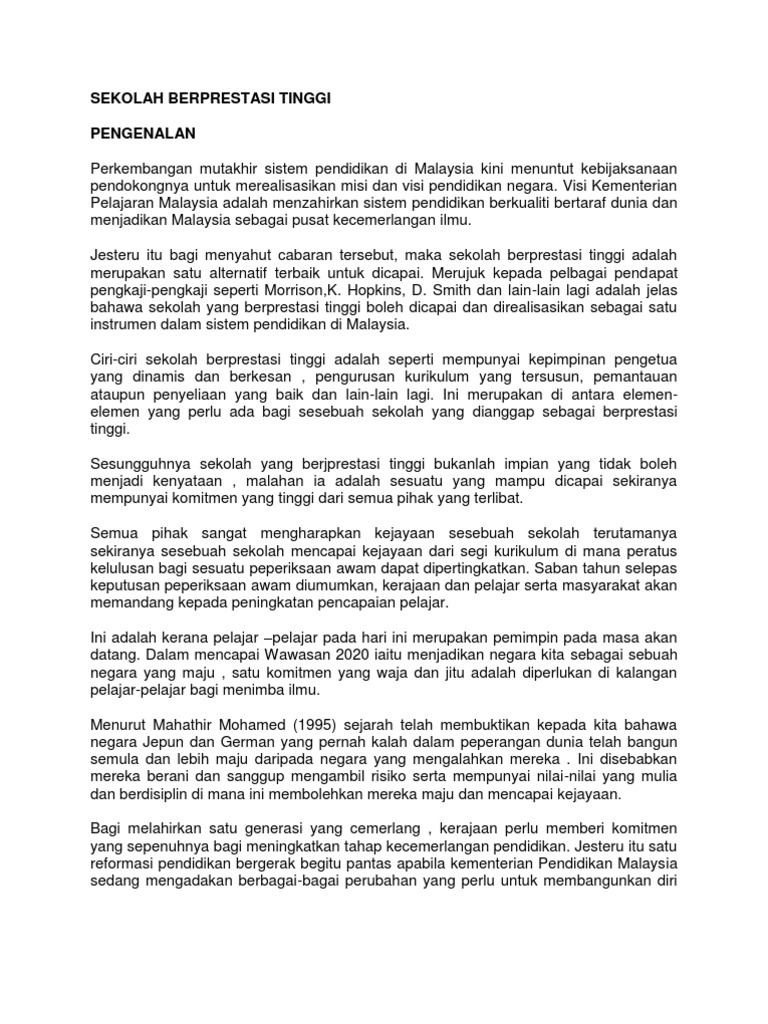 Sekolah Berprestasi Tinggi Pengenalan