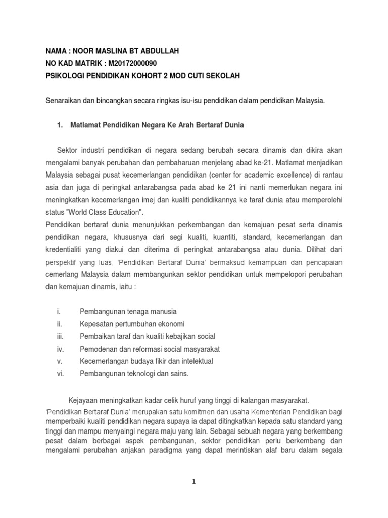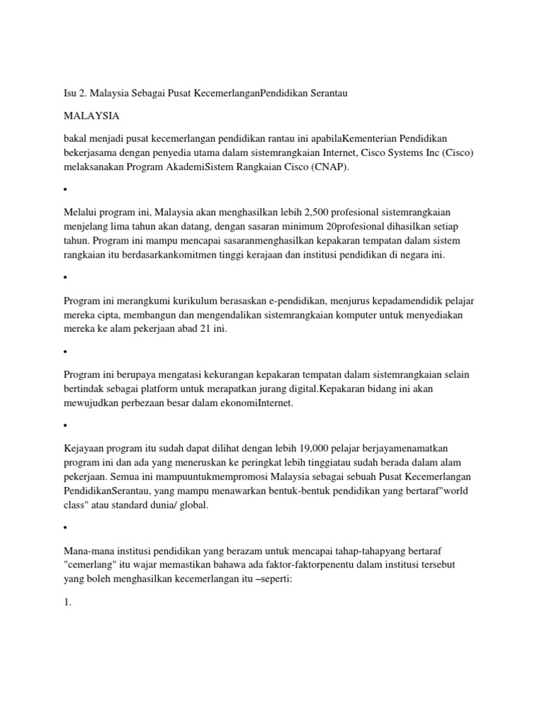 Isu 2 Malaysia Sebagai Pusat Kecemerlanganpendidikan Serantau