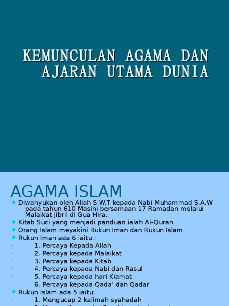 Kemunculan Agama Dan Ajaran Utama Dunia