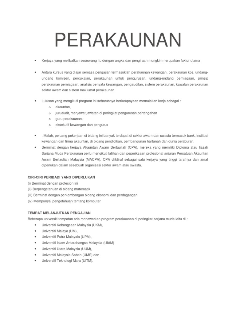 Kerjaya Dalam Bidang Perakaunan Usahawan Com