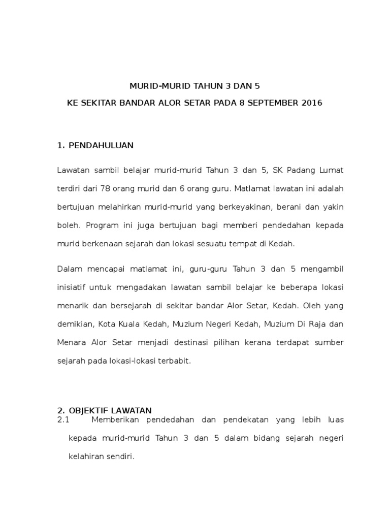 Kertas Kerja Program Lawatan Sambil Belajar Ke Alor Setar Docx
