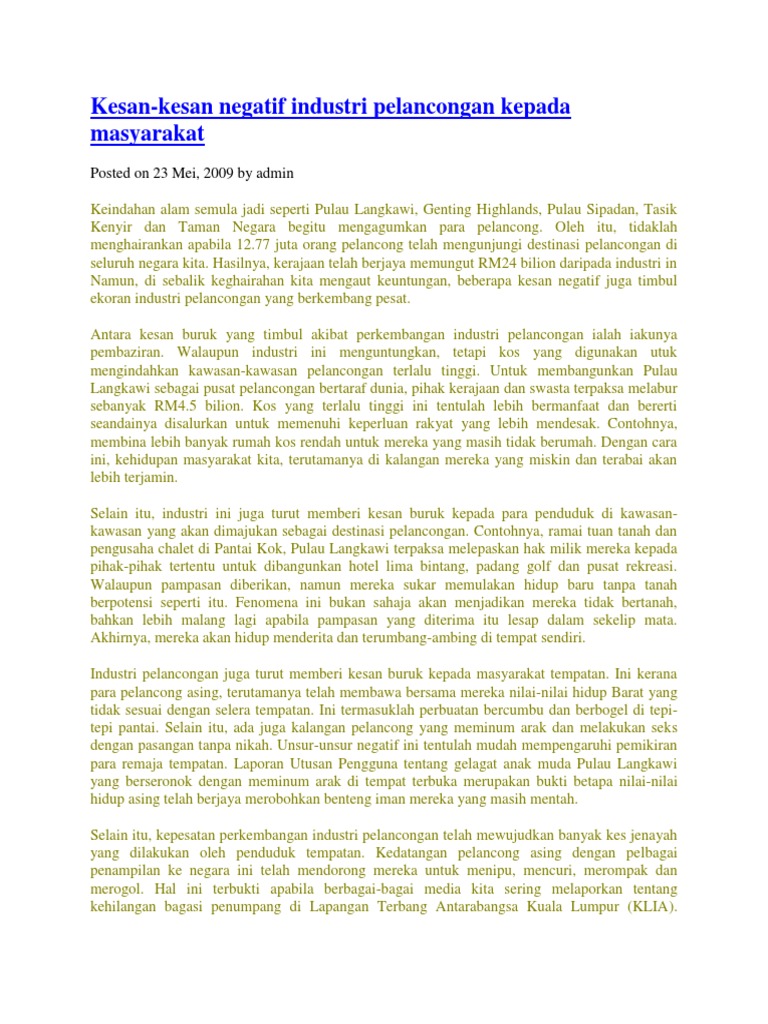 Kesan Positif Dan Kesan Negatif Industri Pelancongan Docx