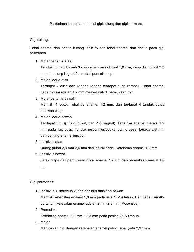 Perbedaan Ketebalan Enamel Gigi Sulung Dan Gigi Permanen