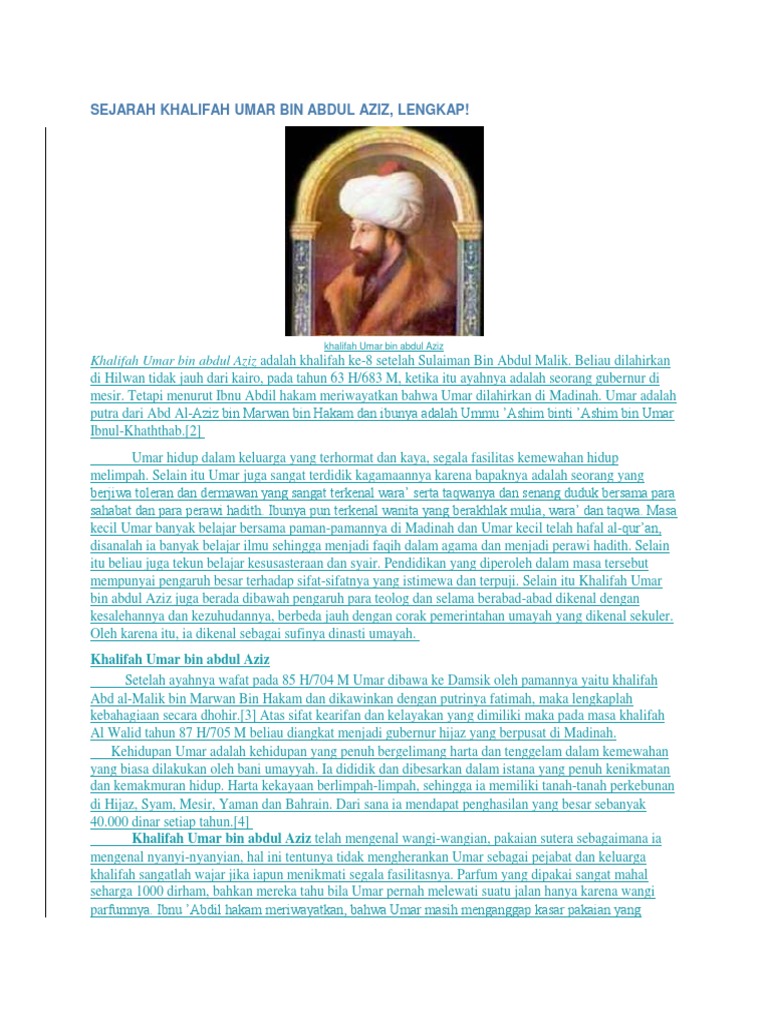 Sejarah Khalifah Umar Bin Abdul Aziz Docx