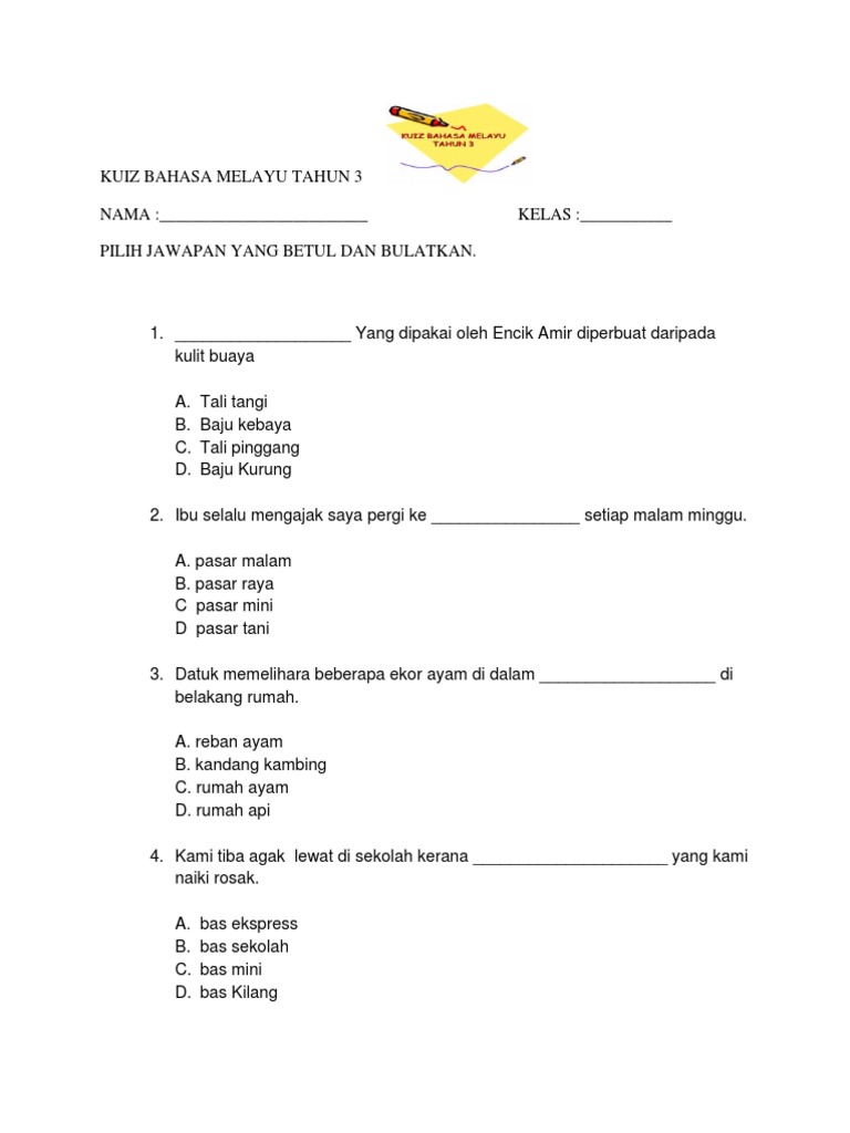 Senarai Terbesar Kuiz Bahasa Melayu Tahun 4 Yang Terhebat Dan Boleh Di Muat Turun Dengan Segera Pekeliling Terbaru Kerajaan