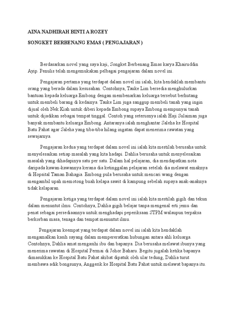 Doc Novel Songket Berbenang Emas Khairuddinayip Warrance St Academia Edu