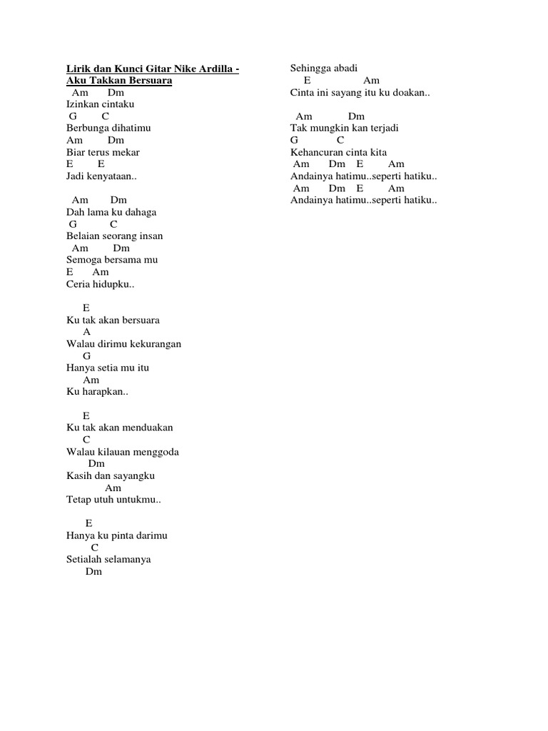 Nike Ardilla Ku Tak Akan Bersuara Chord Kunci Gitar Lirik Chord Gitar Online