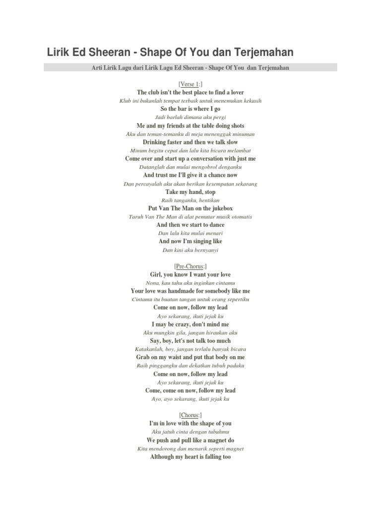 Lirik Lagu Dan Terjemahan Shape Of You Ed Sheeran Az Daedalusdrones Com