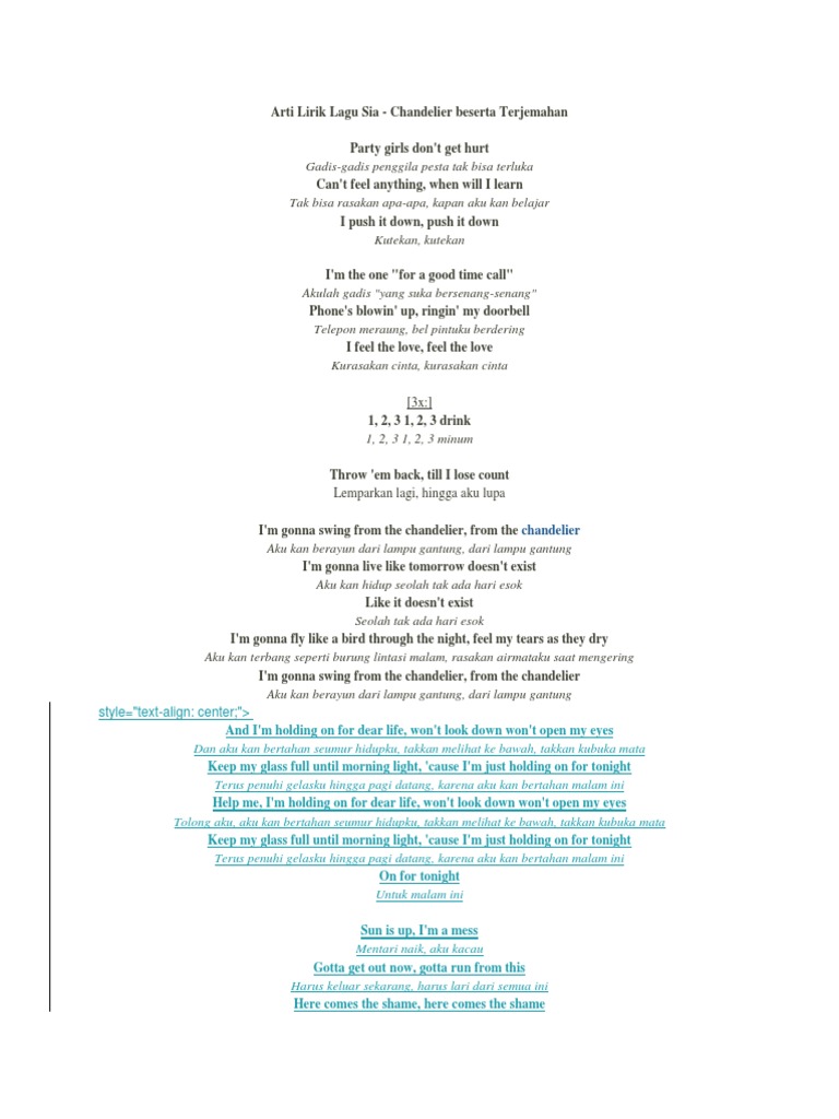 Arti Lirik Lagu Sia