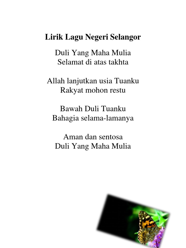 Lirik Lagu Negeri Selangor