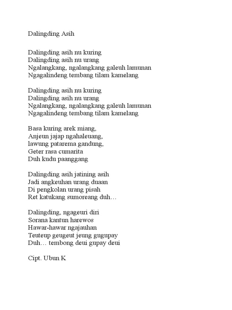 Lirik Lagu Sunda Dalingding Asih