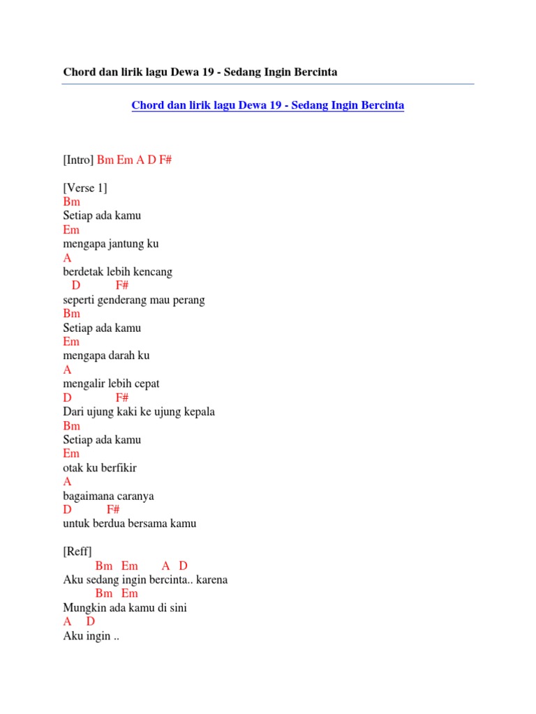 Chord Dan Lirik Lagu Dewa 19 Sedang Ingin Bercinta