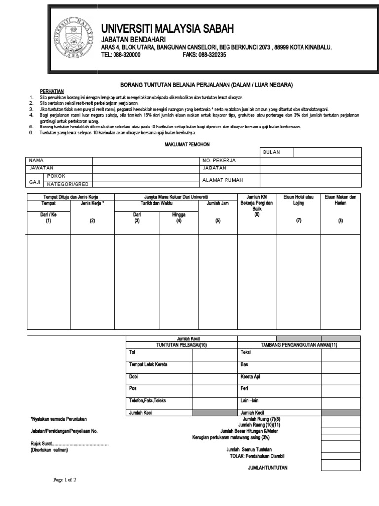 Borang Tuntutan Perjalanan