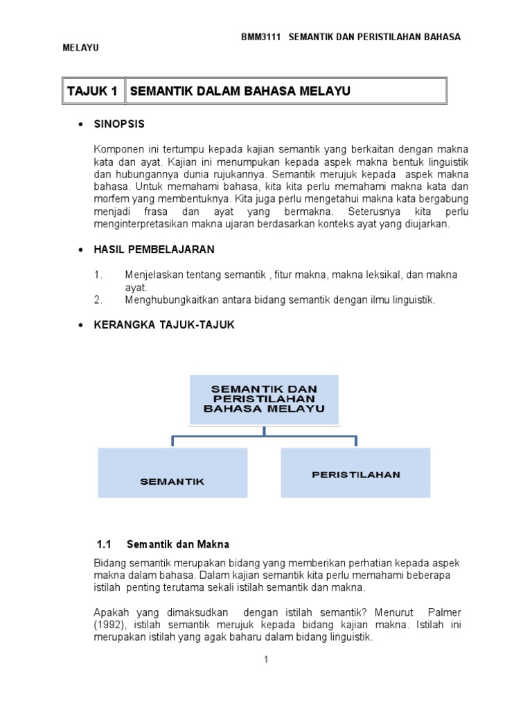Pdf Bab 1 Semantik Dalam Bahasa Melayu Bab 2 Makna Leksikal Dalam Bahasa Mansor Embong Academia Edu