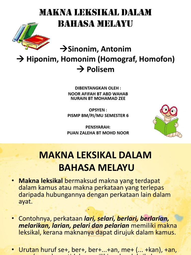 M3 Makna Leksikal Dalam Bahasa Melayu Pdf M3 Makna Leksikal Dalam Bahasa Melayu Tafsiran Makna Leksikal Sinonim Antonim Hiponim Homonim Homograf Course Hero