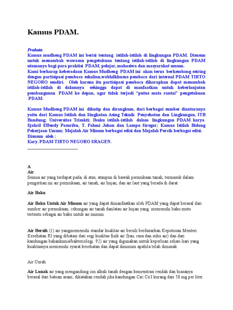 Sebagai batasannya air bersih adalah air yang memenuhi persyaratan bagi sistem penyediaan airminum. Kamus dewan edisi keempat. Pusat rujukan persuratan melayu dewan bahasa dan pustaka malaysia maklumat kata. Kamus dewan edisi keempat.