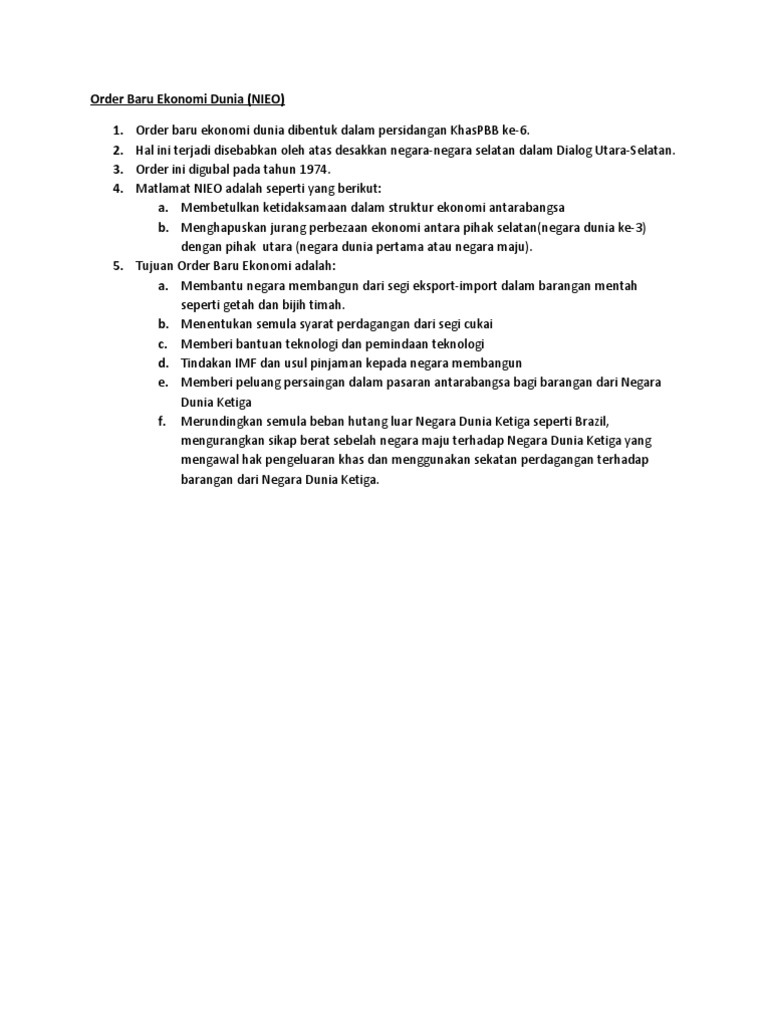 Matlamat Order Baru Ekonomi Dunia Bertujuan Untuk