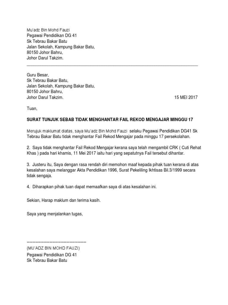 Contoh Surat Tunjuk Sebab Tak Hadir Kerja Lewat Ke Tempat Kerja Tak Hadir Kursus Lain Lain Edu Bestari