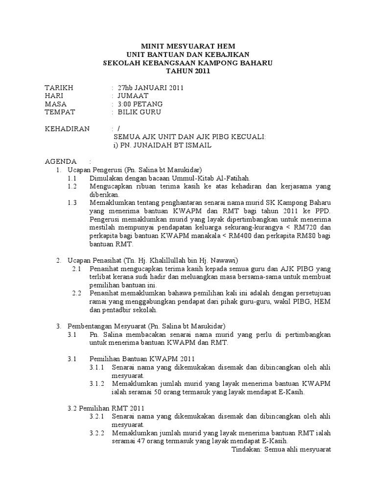 Contoh Minit Mesyuarat Agung Persatuan Downlllll