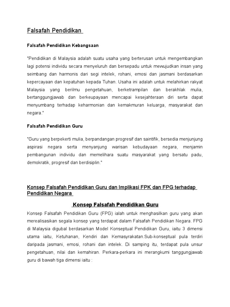 Falsafah Pendidikan Kebangsaan Model Konseptual Pendidikan Guru